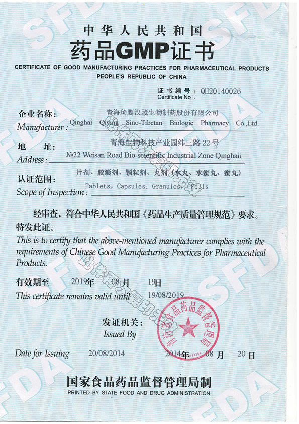 青海琦鷹漢藏生物制藥股份有限公司獲得GMP證書(shū)